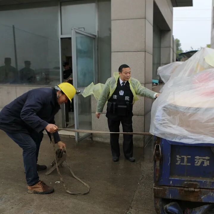 11月23日上午,执行干警冒着风雨前往官林某厂展开腾退工作。该厂房及整体资产已被法院依法拍卖,经法院送达文书并张贴公告后,员工和设备都陆续搬离,原企业负责人余某的父母却继续占用门卫室,拒不交付。执行法官向老余夫妇释明相关法律及拒不履行的后果,老余态度强硬,仍拒绝搬离,执行局干警果断采取措施将老余带离现场,同时组织人员对门卫室物品进行打包装车。雨势渐大,执行干警用遮雨布细心对大量生活用品做好防护,直接为老余夫妇送回家中。执行干警善意文明执行的举措也打动了老余,使他不再抗拒执行。