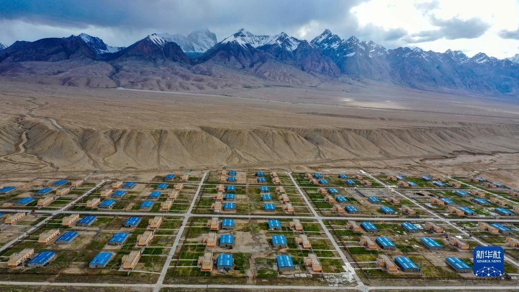 这是在新疆塔什库尔干塔吉克自治县县城附近拍摄的塔提库力易地扶贫搬迁安置点(2019年7月1日摄,无人机照片)。新华社记者胡虎虎 摄
