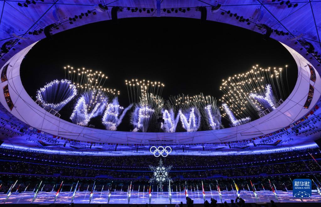 2022年2月20日晚的国家体育场流光溢彩,充满依依惜别的浓浓情谊。“天下一家”字样的焰火在“鸟巢”上空粲然绽放,举世瞩目的北京冬奥会圆满落下帷幕。