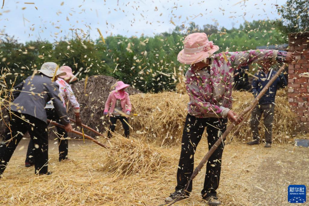 甘肃省定西市渭源县元古堆村村民在脱麦子(2020年8月22日摄)。新华社记者 马希平 摄